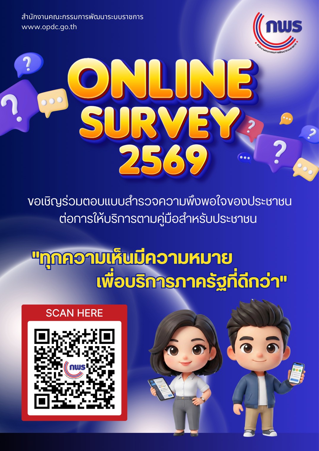 ขอเชิญชวนพี่น้องประชาชนร่วมตอบแบบสำรวจความพึงพอใจของประชาชนต่อการให้บริการตามคู่มือสำหรับประชาชน (Online Survey 2569)